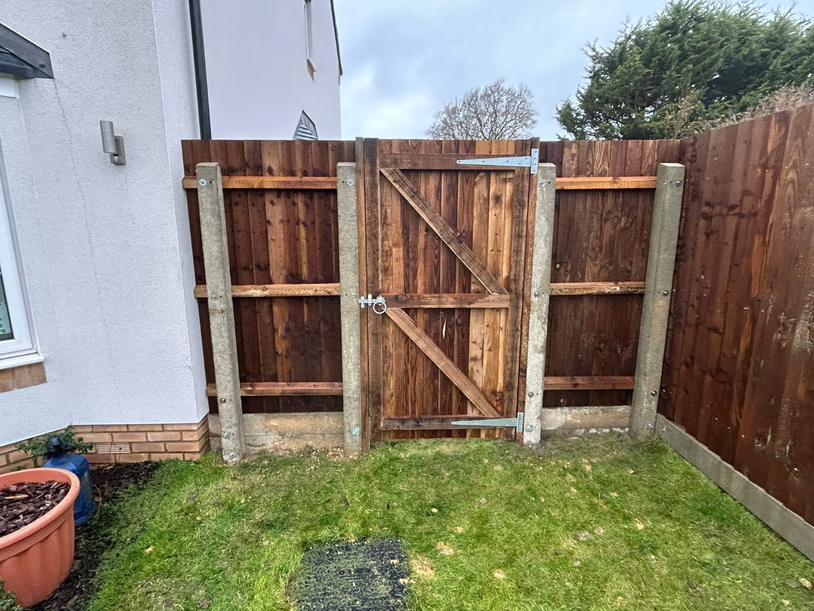 Chris has just completed this varied garden fence installation in Hatfield, Hertfordshire. This project involved a sturdy wooden gate in addition to Closeboard wooden fence panels.
