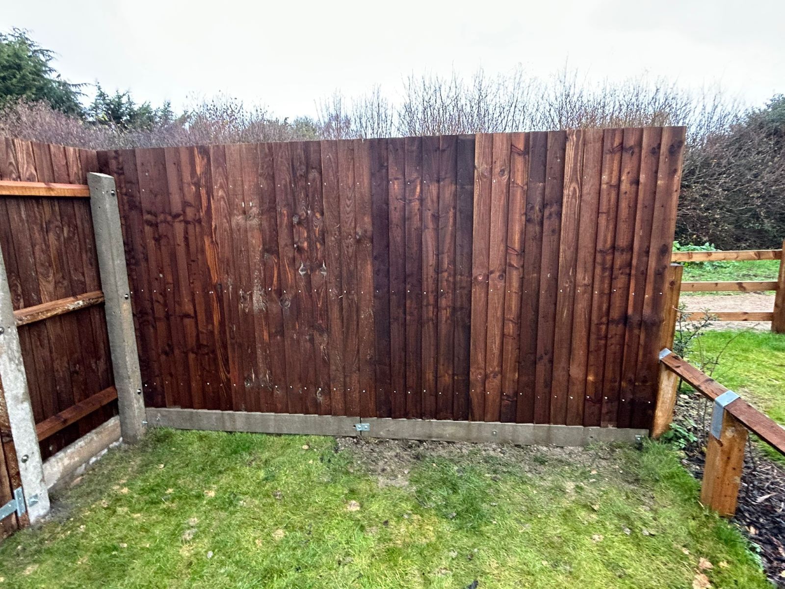 Our installer, Chris, has just completed this garden fence installation in Pavenham near Bedford. This simple project next to municipal common ground involved concrete posts, six inch concrete gravel boards and wooden Closeboard fence panels.