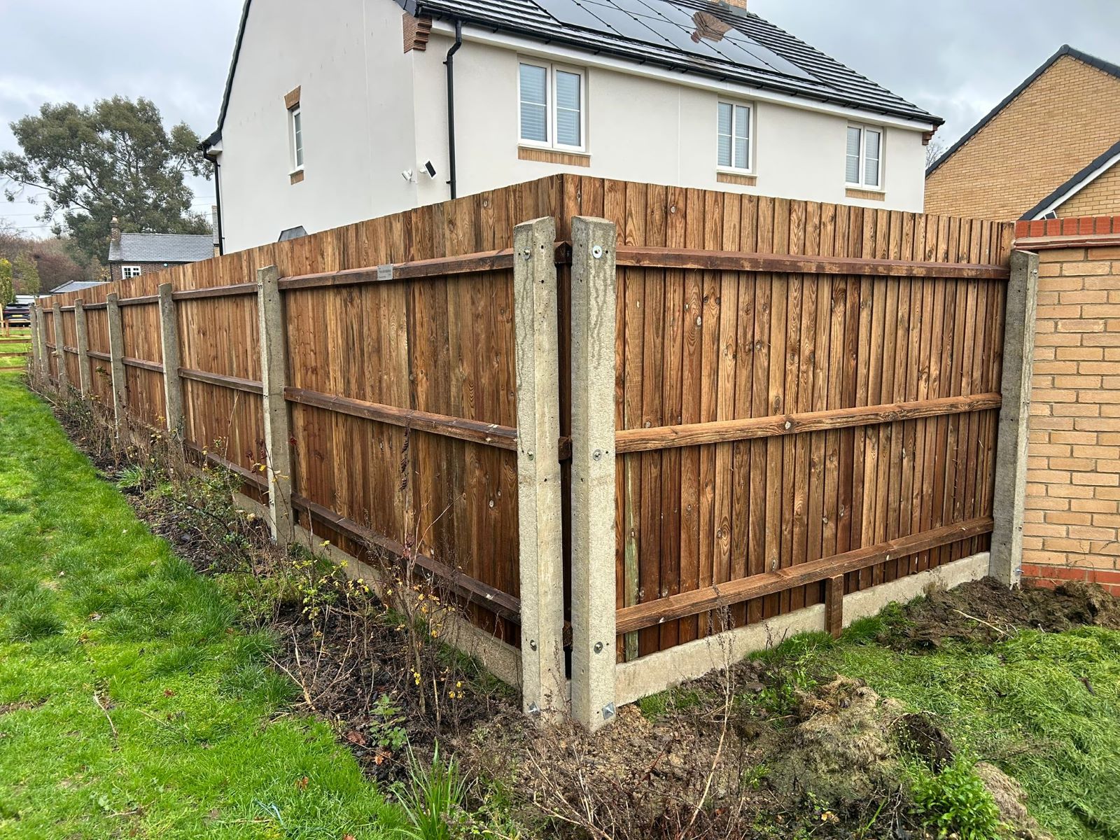 Our guy Elliott has just completed this garden fence installation in Kempston, Bedford, for our client. This included Closeboard wooden fence panels, concrete posts and twelve inch concrete gravel boards in this long garden installation that involved both full height and half-height fences.